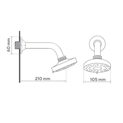 Medidas regadera: 10.5 cms de diámetro Distancia de pared a regadera: 21 cms